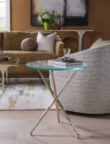 Hammered iron base in a Champagne finish, a textured silver leaf showing natural mill scale and forging marks, with ultraclear tempered wrinkled art glass top. Each artistic top is unique and will vary in appearance and coloration from piece to piece. |