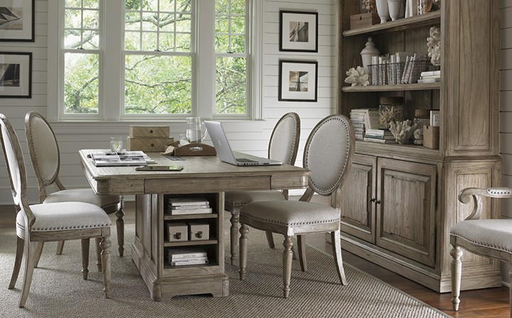 Antique pewter hardware, metal accent brackets and dentil moldings transform a classic look into a modern interpretation of style. Make a statement in your office or media room with the sophisticated new traditional designs of Barton Creek.
