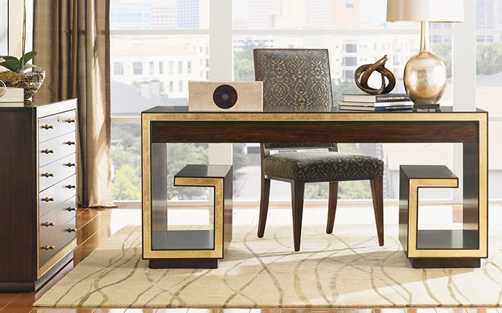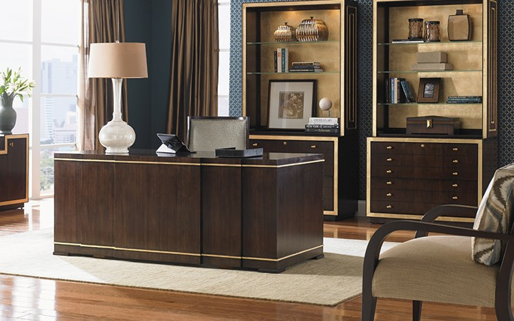 Classic contemporary designs in Walnut reward the discerning eye with accents of authentic gold leaf, offering a look that will set the tone for the most elegant interiors.