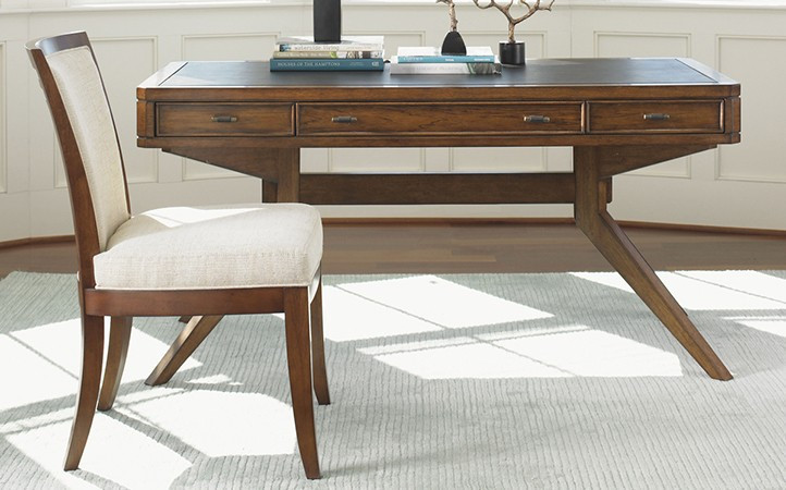 Crafted from Hickory veneers, designs feature a distinctive horizontal motif, metal accents and custom hardware. The look is fresh and modern, with a bit of an edge. Unique silhouettes will transform any office or media room into a statement of personal style.