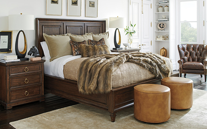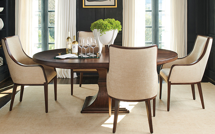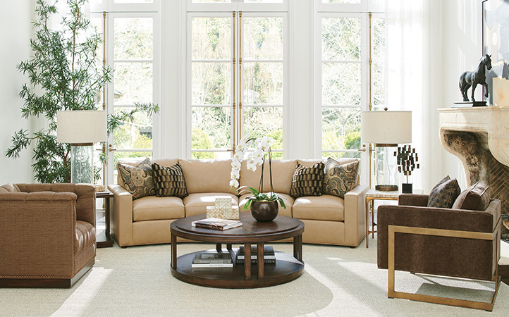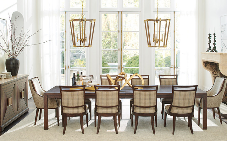 The direction of high-end interior design continues to take on a more casual aesthetic - particularly the traditional category. The look has evolved to incorporate clean architectural lines, transitional styling, statement hardware and an emphasis on comfortable seating. Silverado features classic styling that puts a current touch on traditional design. The collection is crafted from walnut veneers and mahogany solids in a rich walnut finish. Hand-wrought metal bases, in a maritime brass finish, reflect the work of an artisan’s hand, and select items hint of the exotic, with tiger-brown travertine tops.